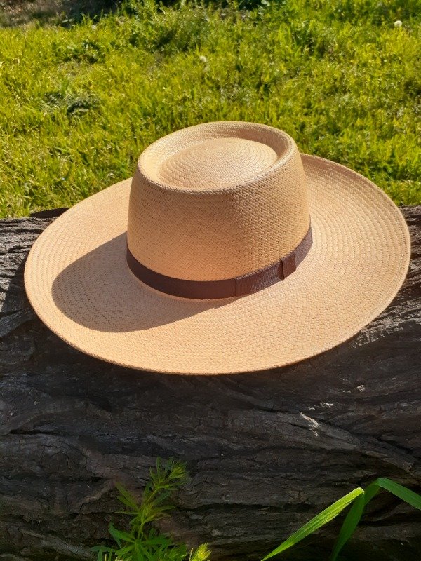 Sombrero Panamá. Modelo pampa. Color tostado. Ala 10cm. Terminación flexil (tafilete elástico).