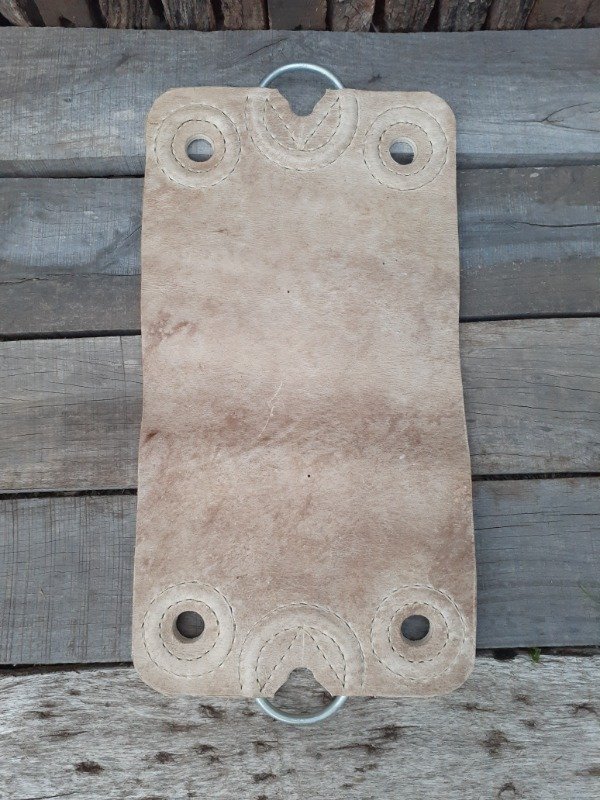 Encimera de cuero, 6 argollas, cosido a mano con hilo encerado.
